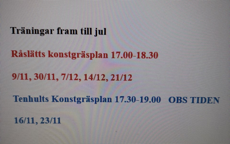 Hej! Nu har vi fått träningstider på Råslätts konstgräs och Tenhults konstgräsplan och vi kör där fram till jul. Söndagar 17.00-18.30 Råslätt OBS 16/11 och 23/11 17.30-19.00 Tenhult P14 30 sep 0kommentarer