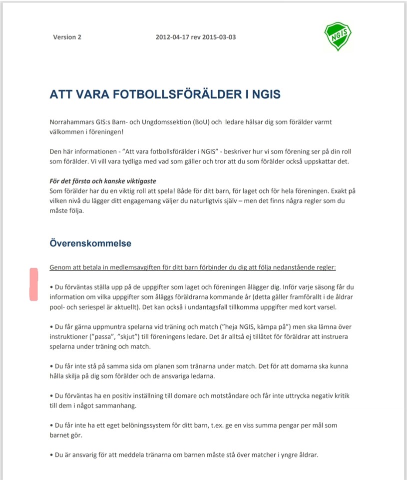 Information om din roll som fotbollsförälder i NGIS