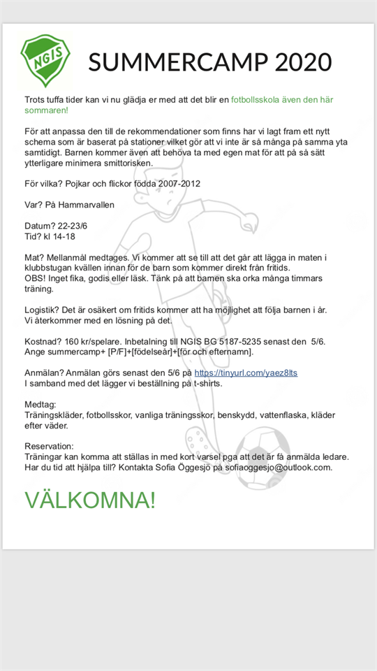 Hej! Det blir en fotbollsskola även den här sommaren! Anmälan gör ni här: https://tinyurl.com/yaez8lts P09-10 22 maj 2020 0kommentarer