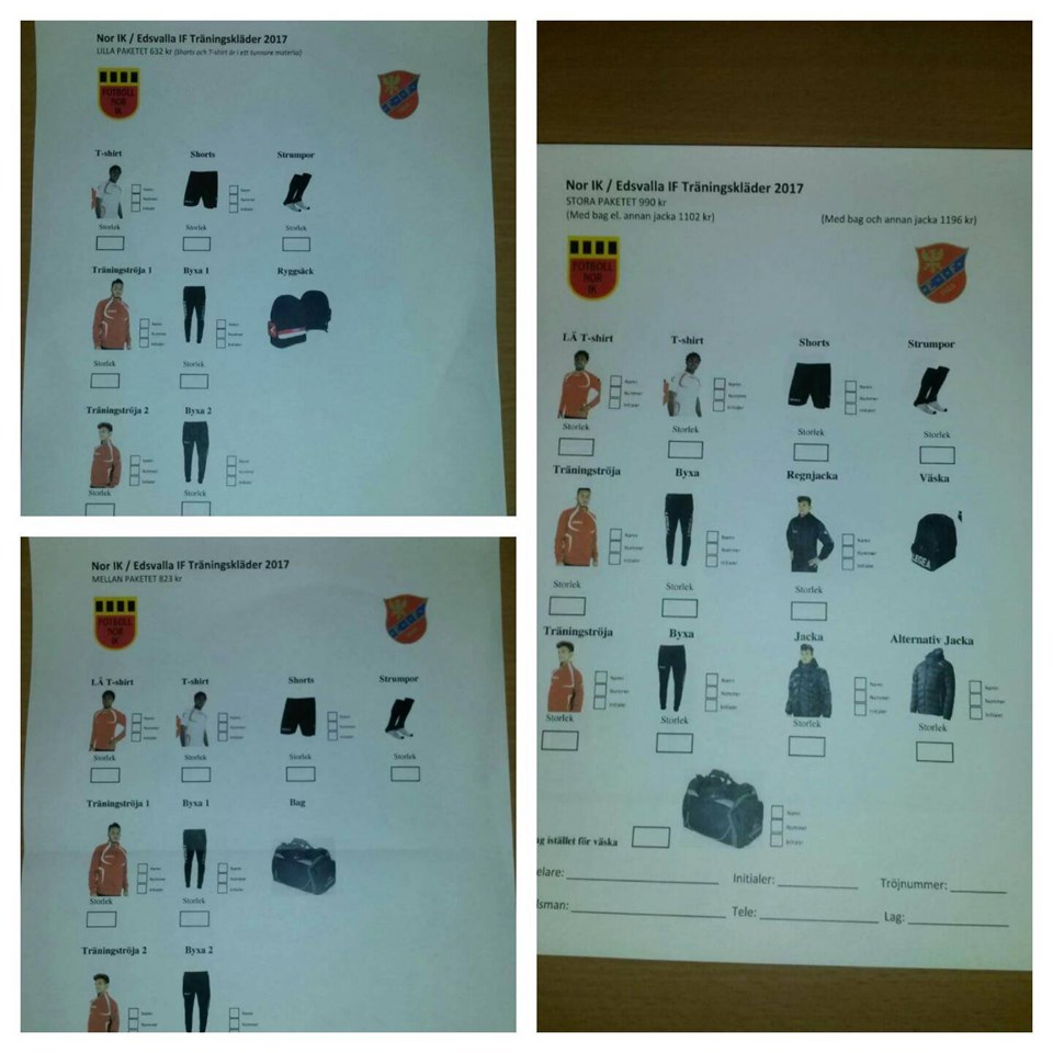 KLUBBKLÄDER 2017 (SOM NI SER SÅ SA JAG FEL PRIS PÅ DET LILLA PACKETET DET ÄR 632:-) ALLA FÅR VÄLJA FRITT VILKET PACKET DE VILL HA. VI KOMMER ATT FÖRSÖKA FÅ IN SPONSORER SÅ DET BLIR BILLIGARE. DET ÄR ETT JOBB SOM ALLA GÄRNA FÅR HJÄLPA TILL MED. VI HAR PENGAR KAVAR FRÅN FÖRRA ÅRET SOM VI KAN ANVÄNDA. FÖR ATT FÅ PRISERNA SOM STÅR PÅ LAPPARNA MÅSTE ORDERN FRÅN FÖRENINGEN LÄGGAS SENAST DEN 26 FEBRUARI SEN BLIR DET EN PRISHÖJNING. DET NI BEHÖVER GÖRA ÄR ATT ÅKA TILL SPORTHALLEN PÅ TISDAG ELLER ONSDAG V8 MELLAN 17.30 0CH 19.00 OCH PROVA VILKA STL NI VILL KÖPA. JAG KOMMER INTE ATT VARA PÅ PLATS DÅ JAG ÄR I SUNDSVALL. HA EN BRA DAG MARIA P-06-07 16 feb 2017 0kommentarer