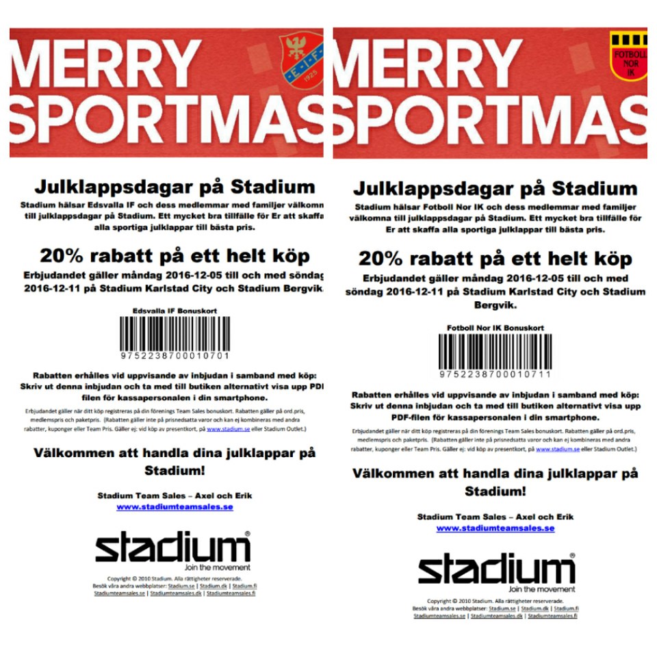 Jul rabatt på Stadium P-06-07 22 nov 2016 0kommentarer