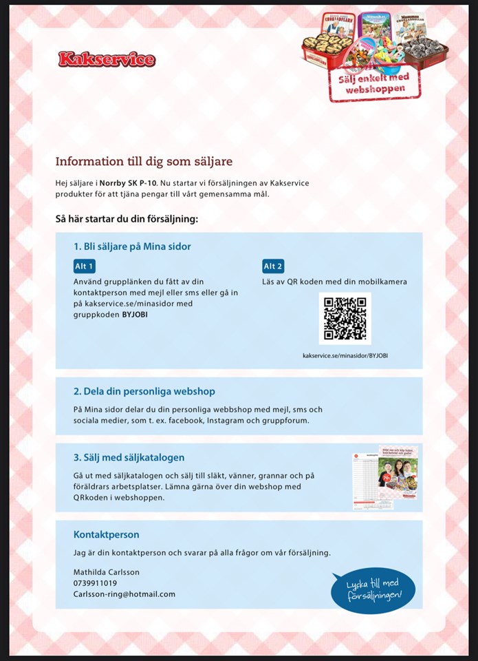 Vi drar igång en kakförsäljning idag, få se hur långt vi kommer med målet att ta oss till Dalecarlia ☺