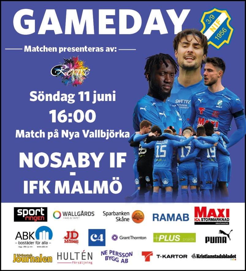 Dags för ny hemmamatch på söndag mot klassiska IFK Malmö på Nya Vallbjörka. Nosaby har börjat hitta tillbaka till spelet laget hade i inledningen av säsongen. Dock ligger man kvar på 11:e plats precis över negativ kvalplats men med häng på lagen ovanför. I helgen hade man guldläge att öka avståndet ner till Österlen när de fick en man utvisad i matchinledningen. Tyvärr kunde inte Nosaby utnyttja det utan fick nöja sig med en poäng. Efter en del problem med avstängda spelare i de senaste omgångarna är alla tillgängliga till helgens match IFK Malmö som kommer från Div 1 har har haft en tuff inledning på säsongen och är fortfarande segerlösa men var mycket nära en 3 poängare mot IFK Hässleholm som kvitterade på stopptid. Det har varit en del spelaromsättning både inför och under våren. Ett sent nyförvärv är f d nosabymålvakten Max Rundqvist som värvades från AB Köpenhamn och debuterade senast mot IFK Hässleholm. Laget lär bli bättre ju mer man blir samspelt Avspark kl 16.00. Om Du inte kan vara på plats så sänder Bladet matchen på sin hemsida. A-Lag 8 jun 2023
