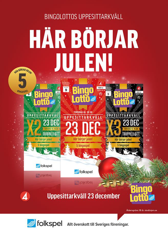 23 dec är det den stora Bingolottokvällen då vinster för miljoner delas ut. Du kan genom beställa dina lotter via Nosaby IF ta chansen att vara med och dela på vinsterna samtidigt som Du stöder föreningen. Du som förälder beställer lotterna via laget och därmed går en del av ersättningen till respektive lags lagkassa. Beställningen kan också göras via Nosaby IF:s mail nosabyif@live.se. Lotterna betalas vid beställningen och levereras i god tid innan den 23 dec. Du som företagare som vill stötta Nosaby IF beställ Bingolotter som en julgåva till anställda, kunder och samarbetspartners via vårt kansli. Nosaby IF 27 nov 2021