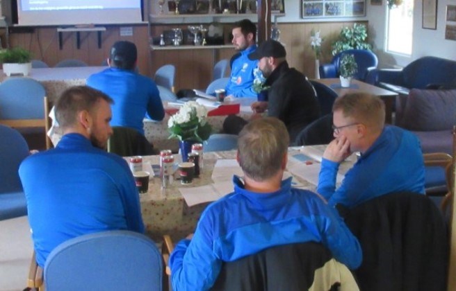 Idag var det full aktivitet på Nya Vallbjörka i det fantastiska höstvädret.när vår Ungdomstränarutbildning C äntligen kunde slutföras med Dag 2. Första kursdagen genomfördes redan den 18 oktober ifjol men p g a pandemin har dag 2 inte kunnat genomföras förrän idag 1 år efter. Normalt är det 4 veckor mellan kurstillfällena. Kursen består av två kursdagar á åtta timmar då man varvar teori och praktik. Mellan kursdagarna görs ett antal webbuppgifter. Totalt var det 9 kursdeltagare alla från Nosaby IF.som nu kommer få sina välförtjänta kursdiplom. Kursledare var Mats Svensson. Nosaby IF 24 okt 2021