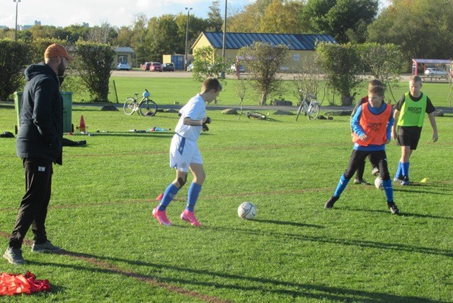 Idag var det full aktivitet på Nya Vallbjörka i det fantastiska höstvädret. Förutom 13 års-match så var det också kursdag 1 i Tränarutbildning C-ungdom. Tränarutbildningen en obligatorisk instegsutbildning för alla som vill gå vidare inom Svenska Fotbollförbundets utbildningsprogram. Kursen består av två kursdagar á åtta timmar då man varvar teori och praktik.Idag var vårt 12 års-lag träningsgrupp i praktikpasset. Mellan kursdagarna görs ett antal webbuppgifter. Totalt var det 10 kursdeltagare alla från Nosaby IF. Kursledare är Mats Svensson och nästa kurstillfälle är 7 november. Nosaby IF 18 okt 2020