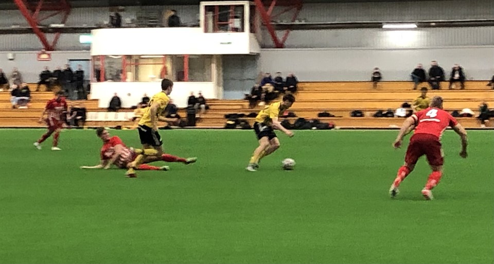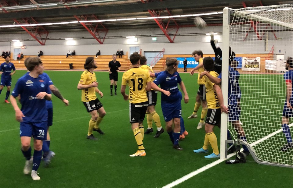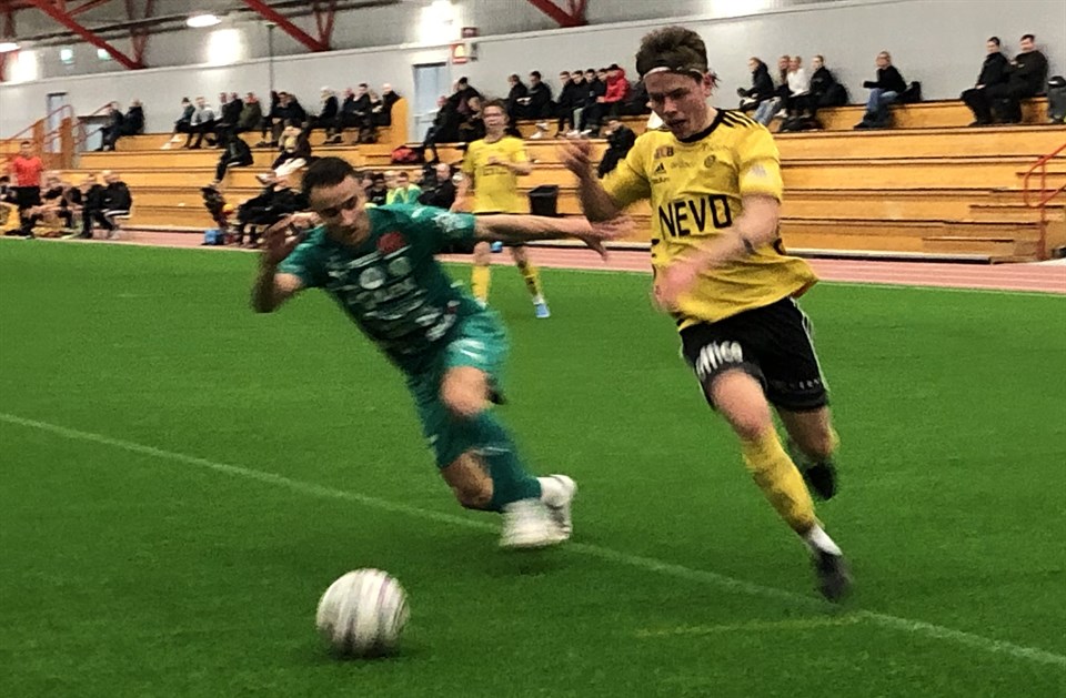 Notasherrarna tog en meriterande seger på söndagen. Div 2-laget Bodens BK besegrades med 2-1 (2-0) efter dubbla mål av Robert Lidhammar inom loppet av åtta minuter i början av matchen. BBK började matchen med stort bollinnehav och det kom överraskande när NIK tog ledningen. Dock hade man en riktigt bra period kring målen där man var mycket aggressiva och lyckades i den höga pressen. 1-0 kom i den 13:e. NIK satte fast BBK och bollen kom till Jesper Jacobsson som chippade in bollen bakom den gröna backlinjen och där kom Robert Lidhammar först. Robert var nära ett nytt mål direkt efter sedan ny aggressiv press gett bra läge. I 21:e kom så 2-0. Jonathan Kåreborn trampade runt på vänsterkanten (bilden) och serverade snett inåt bakåt. Robert nöp till på en touch. I andra halvlek höll NIK ihop det bra bakåt trots åtta byten. Det blev inte så långa anfall men man behöll kylan och spelade sig ofta ur situationer på ett behärskat sätt. BBK hade mer boll och fick till en del inspel. Reducerade till 2-1 med kvarten kvar men i övrigt behövde Morgan bara göra en riktigt kvalificerad räddning. Daniel Engberg, tränare: - Det känns såklart riktigt bra. Framför allt håller vi ihop laget bra bakåt. Och får utdelning när vi slår till med hög och aggressiv press. - Stundtals hade vi kanske bättre bollhållning mot Skellefteå trots 0-4 men det fanns många bra tendenser idag också. - Vi kan vara något bra på spåren. Nästa match: Helgen 25-27/2 spelas Arnes Bil Cup i Arcushallen.