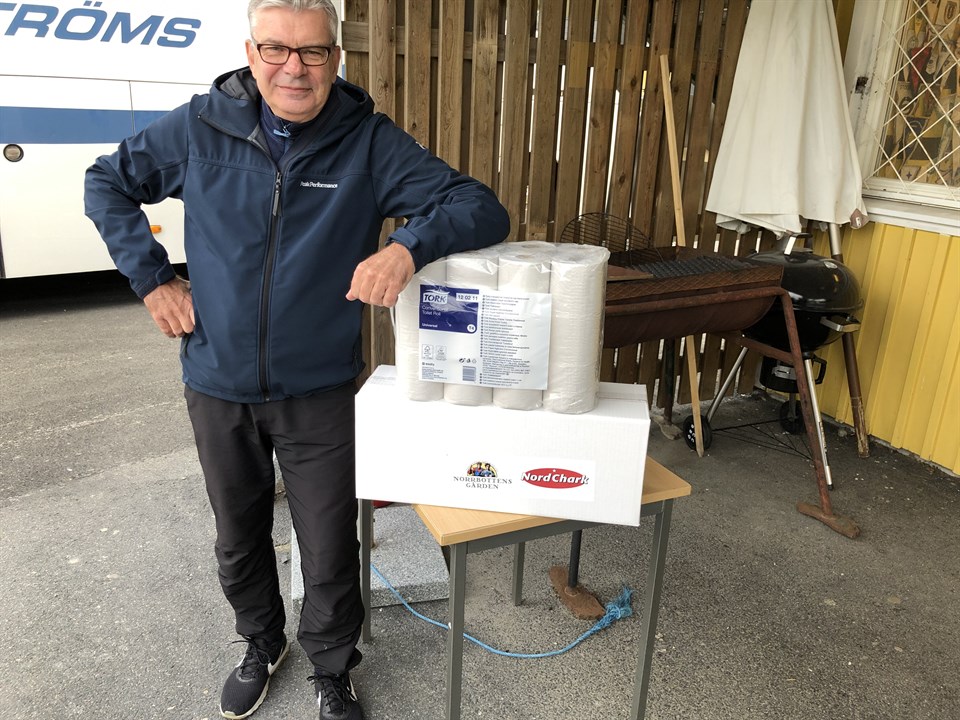 Pristagare i samband med derbyt mot BAIK onsdag 8/9: Kontantvinsten på 1.000 kronor vanns av Notabs starke man Kjell Nilsson (bilden). Rätt nummer på Charklådan från Nordchark/Norrbottensgården hade Carina Andersson nere i Närke. Sonen tillika högerbacken Isak fick ta hand om vinsten. Vinnare av balen med toapapper: Stefan Lundin Matchsponsorn Rutqvist Bygg delade ut pris till Atåha Ataev och BAIK-keepern Simon Lundberg.