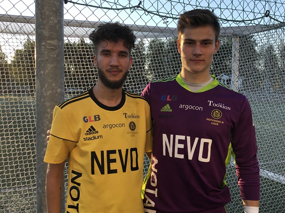 En härlig sommarkväll och tre nya pinnar till Notasherrarnas lag 2 i div 4. Det tog ett tag, en bit in i andra, innan nollan sprack men då rann det iväg till 4-0 (0-0) mot Munksund/Skuthamn SK. Bild: Tvåmålsskytten Nino Tietäväinen och debuterande målisen Harry Kircher. NIK hade ett stort bollövertag i första halvlek. Men det blev inte många farliga lägen. Istället var det anmärkningsvärt många offsideavblåsningar. Även om matchen startade först 19.30 var värmen krävande och förmodligen fick gästerna betala priset för allt jagande utan boll när andra halvlek kom igång. Det tog bara någon minut innan Emil Lindberg bröt in från vänster och distinkt satte 1-0. Bara minuten senare revs Nino Tietäväinen ner och Sven Eriksson Sundström omsatte mycket säkert den efterföljande straffen till 2-0. Efter det mattades NIK en del men trots det var det mycket öppnare och mer spel i djupled resten av matchen. En som aldrig slutade springa var Nino Tietäväinen. Trots att det blev lite väl många offsidelöpningar hittade Nino till sist rätt och blev tvåmålsskytt för andra gången på fyra dagar. Detta efter två mycket väl förvaltade frilägen. Först högt i bortre och sedan rundad målvakt. Snyggt och effektivt. Längst bak i buren fick Harry Kircher, ny från IFK Luleå, hålla nollan i debuten: - Idag var det tacksamt att stå bakom ett lag som spelade ett mycket stabilt försvarsspel. - Det känns jättebra att ha kommit till Notas. Jag har fått ett fint bemötande och känt mig välkommen. Jacob Engström, tränare: - Känns bra att vinna och hålla nollan. När vi undvek att springa offside skapade vi ju även mängder av chanser. Kommande matcher: Nu väntar två spännande matcher onsdag/torsdag. Först derby i div 2 mot Bodens BK onsdag 7/7 med avspark redan 18.00. Sedan kommer tabelltvåan Hemmingsmarks IF till Tuna för seriefinal i fyran torsdag 8/7 kl.19.30. KÖP LOTTER OCH STÖTTA! Vi slår ett slag för lotteriet som är igång inför div 2-derbyt mot Bodens BK på onsdag 7/7. Hur Kan du stötta via lottköp? För 19 kr får Du en lott. För 99 kr får Du sex lotter. För 199 kr får Du femton lotter. Swisha till 123 29 44 973. Märk med "Derbylotteriet". Lotter säljs i förväg samt på Tunavallen i samband med match. Dragning sker onsdag 7/7 kl.18.45. Lotterivinster 7/7 1 st Charklåda från Nordchark (värde ca 700 kr) 1 st Kontantvinst på 1.000 kr Vi tackar alla Notashjältar på förhand!