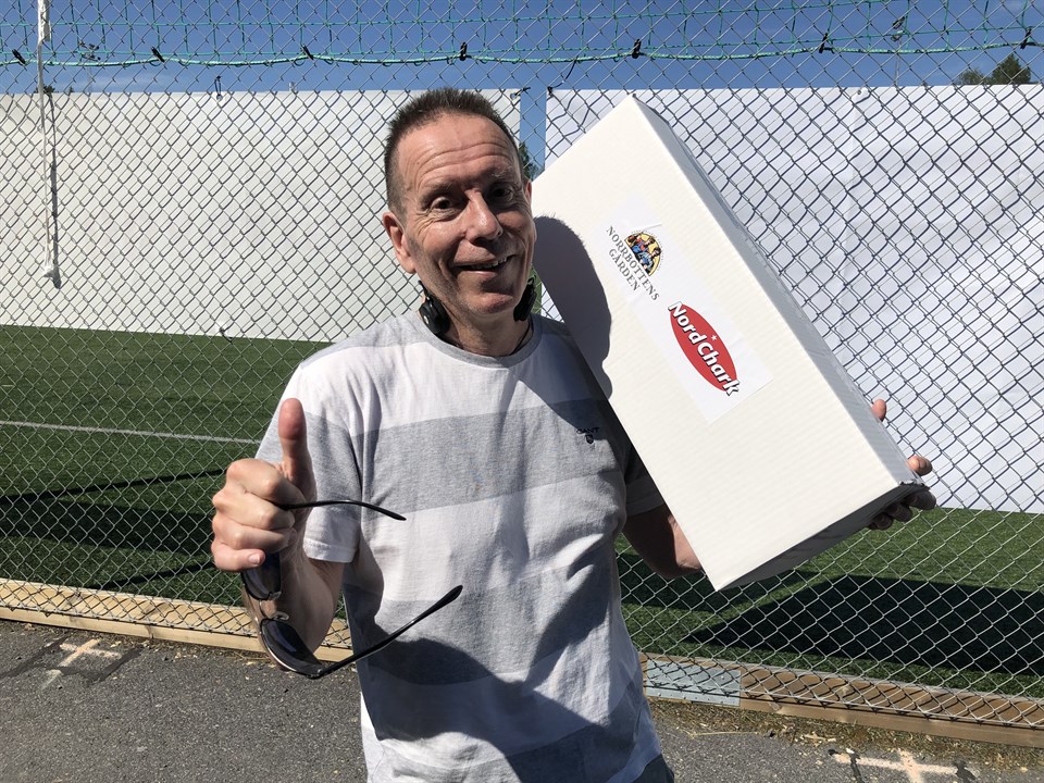 Notasherrarna gratulerar Ludvig Wästfelt som vann Charklådan från Nordchark i ”Semester-50/50-lotteriet”. Även Linus Sundström gratuleras. Linus vann 2.850 kr. Och Notasherrarna tackar så mycket då Linus meddelar att han efterskänker vinsten. Tack alla som varit med och stöttat!