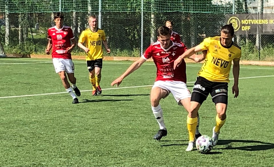 Derbyseger på onsdag. Lätt träning på torsdag. Resa till Östersund på fredag. Avspark 13.00 mot Frösö IF på lördag. Notasherrarna lever ett intensivt liv för tillfället. Men Anton Olofsson trivs. - Vi har ju längtat efter att komma igång med matcher ett halvår. Och när man vinner derby och får göra mål är det bara kul. På lördag förväntar vi oss en ny tuff match. Länk till intervju med Anton O Bild: Från Norr Media Ja, inte blir det någon längre vila. Lördag 12/6 tar nykomlingen Frösö IF emot på en arena som väcker glada minnen för notvikarna. Det var där som Jesper Gylling med ett sent nickmål fixde så att Notas via fler mål på bortaplan slog ut lördagens värdar i kvalet till div 2 2019. Frösö IF tog nya tag och vann serien 2020 och nu är man alltså i div 2. Där har det blivit två förluster i en tuff inledning. Först 1-2 hemma mot Team TG som kommit ned från div 1. Och i onsdags 1-4 i derbyt mot Notas premiärmotståndare IFK Östersund. Notastränarna: - Det handlar mest om att ladda om batterierna och vara redo för en ny match. Vi gjorde många saker bättre mot BAIK än i premiären och vi hoppas ta med oss detta till en tuff bortamatch. Truppen: Morgan G, Isak A, Rasmus K, Lucas L, Rickard H, Atåha A, Emil L, Alfred H, J Kåreborn, Sven ES, H Drugge, Anton O, R Lidhammar, Nino T, J Sochor, Jesper J Det saknas några namn. Jesper Gylling dras med fotskada från premiären. Tobias Pettersson gorde sista matchen i onsdags innan flyttlasset går hem till Stockholm. Magnus Johansson är tvungen att vara hemma och jobba och Karl Pettersson har en timeout. Glädjande är att Felix Rierstam har återhämtat sig snabbare än förväntat från ljumskoperation. Han spelade i tisdags i div 4 och gjorde mål mot Ersnäs och var på bänken mot BAIK. Men allt har gått så snabbt att det inte gick att lösa med jobbet nu i helgen. Rapportering: Tyvärr inga livesändningar men NIK försöker göra en bra uppdatering i Facebook-gruppen "Notisen".