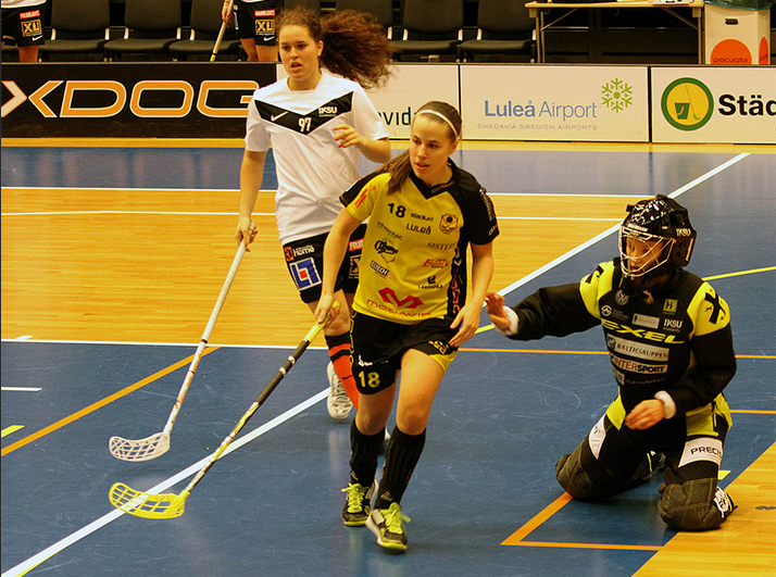 Vi är inne i en matchfri period just nu men träningsveckorna rullar på nästan som vanligt. Jag har idag pratat med lagets äldsta målvakt, 21-åriga Melina Harjuniemi. Hon gör sin andra säsong för Notas och Melina har i mina ögon utvecklats mycket sedan hon kom till Notviken förra året. Hej, Hur är läget? - Hej, Jo det är bra! Hur har träningsveckan sett ut? Det stod "annan aktivitet än innebandy" på dagens agenda, vad innebar det? - I måndags hade vi träningsmatch och det gick bra hörde jag, (själv jobbade jag). På onsdagens träning spelade vi mycket. Annan aktivitet än innebandy innebar latinsk dans. Det var rätt kul men personligen hade jag hoppats på en rejäl slutkörare istället. Hur gick det för ett gäng stela innebandyspelare? - Haha, helt okej tycker jag! Du kommer ursprungligen från Kalix. Hur har du hamnat i Luleå? - På grund av jobbet, fick arbete här direkt efter gymnasiet. Tidigare i höst när jag intervjuade Helena berättade hon att ni känt varandra sedan dagis. Var hon den enda du kände i laget sedan tidigare? - Ja, eller hon och Frida Tönnäng som spelade förra året och som också är ifrån kalix. Du köpte en hund i våras. Hur är det att vara hundägare och berätta lite om vilken hund du har och vad den heter? - Ja, det är verkligen jättekul! Hon heter Nova och är en golden retriever. Fyller 6 månader imorgon och är en väldigt glad liten prick. Kommer med små hyss då och då, som ett litet barn antar jag! Hur många saker har hon hunnit äta upp? - Mina hörlurar, två mobilladdare, en kudde, lite smått och gott helt enkelt. Jenny Lundberg som spelade med oss i notas föregående säsong har i år agerat målvaktstränare. Vad betyder det att få stöd av en före detta elitmålvakt? - Det betyder nå så fruktansvärt mycket. Hennes stöd och tips är guld värda! Vad har ni framförallt jobbat med för att förbättra ditt spel? - Vi har fokuserat på hur jag står i målet och att jag ska våga agera utåt. Hur skulle du beskriva dig själv som innebandyspelare? - Vad svårt, men jag skulle nog säga att jag är reaktionssnabb och att jag inte släpper några onödiga returer. Innebandy VM spelas just nu i Göteborg. Vilka tror du kommer att vinna? - Sverige! Vem i laget... Är roligast? - Julli Dansar bäst? – Erika Har bäst spelsinne? – Erika och Wilma Skjuter hårdast? - Agnes Har bäst musiksmak? – Jag Är största godisgrisen? – Marri Spenderar mest tid framför spegeln? – Öhman I skrivande stund spelar Sverige kvartsfinal mot Estland och det ser ut att bli en klar seger. Semifinalen kommer nu att spelas på lördag och eftersom vi inte spelar i helgen rekommenderar jag att se en match från tv-soffan. Vi håller även tummarna för att Ulf får komma tillbaka till Luleå med den ädlaste valören runt halsen! / #21