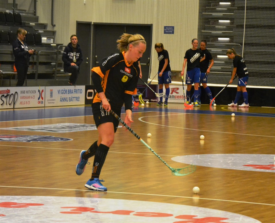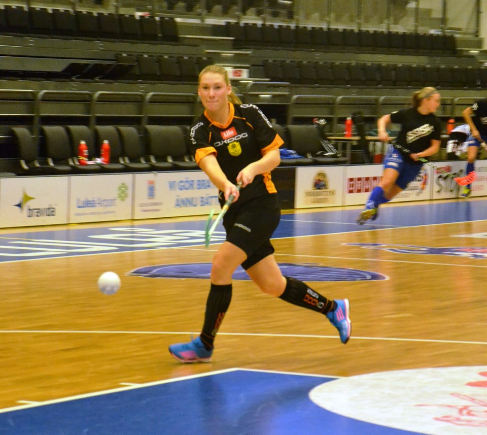Till helgen är det hemmamatch mot IKSU Ungdom. Ett lag som spelar en anfallsglad innebandy och som har flera individuellt riktigt skickliga spelare. Inför helgen har jag idag haft en liten pratstund med en av våra målvakter, Hanna Johansson, som börjat spela med notas inför säsongen efter att ha flyttat till Luleå från Gävle. Hej, Hanna hur är läget? - Jo det är bra! Hur har träningsveckan varit? - Det var en lugn träning i måndags efter helgen sen onsdag och torsdag har det varit mycket spel. Vi har tränat mycket på positionsspel vilket gick riktigt bra idag! Du har flyttat hit till Luleå inför säsongen. Berätta lite om hur och varför du hamnade här uppe i norr och om valet att fortsätta med innebandyn? - Ja jag flyttade hit för att plugga till Brandingenjör på LTU. Innebandyn kände jag att jag ville fortsätta med och Notviken hade jag mött tidigare i serien. När Pelle sedan ringde mig under sommaren tackade jag ja till att spela med notas! Du spelade tidigare med Strömsbro, laget vi spelade mot i söndags. Hur kändes det att spela mot ditt gamla lag på din förre detta hemmaplan? - Det var lite vemodigt och speciellt men så är det väl alltid första gången med tanke på att jag spelat med vissa spelare i elva år! Hur har det vara att komma in i laget som ny spelare från ett annat lag i samma serie? - Självklart var det lite nervöst innan jag kom upp men jag känner att jag kommit in bra i laget tack vare alla spelare! Hur skulle du beskriva dig själv som målvakt? - Jag tycker att jag har bra positionsspel och är bra på att snacka. Vad tror du om helgens match? - Jag tror att det kommer bli en match med högt tempo. Jag tror att vi kommer trötta ut dem ju längre matchen går och det kommer göra att det väger över till vår fördel. Vem tror du vinner den interna poängligan i år? - Josefin Öhman eller Wilma Johansson Efter att ha bott med dig på bortamatcherna har jag lärt mig att du kan allt och lite till om film så avslutningsvis måste jag fråga, vilken film vill du rekommendera? - Såklart finns det många men skulle nog säga The Grand Budapest Hotel. Vem i laget… Är roligast? – Julli Är snabbast? – Evelina Har bäst spelsinne? – Erika eller Wilma Har bäst musiksmak? – Jag Är största godisgrisen? – Det ryktas om Marri.. Spenderar mest tid framför spegeln? – Sofia Matchen på söndag spelas mot IKSU Ungdom klockan 14:00 på Luleå Energi Arena. Ta med en vän och kom och heja fram oss till seger! / #21