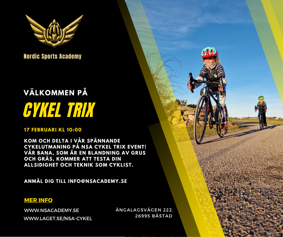 🚮 NSA Cykel Trix Event 🚮 Kom och delta i vĂ„r spĂ€nnande cykelutmaning pĂ„ NSA Cykel Trix Event! VĂ„r bana, som Ă€r en blandning av grus och grĂ€s, kommer att testa din allsidighet och teknik som cyklist. 📅 Datum: 17 februari ? Tid: 10:00 📍 Plats: ÄngalagsvĂ€gen 222, 26995 BĂ„stad Är du intresserad anmĂ€l dig till info@nsacademy.se. VĂ„r partner @bjarecykel.se ser gĂ€rna att alla som vill kan delta. SĂ„ om du saknar cykel gĂ„r det att ordna om man meddelar innan. VĂ€nliga HĂ€lsningar Nordic Sports Academy NSA CYKEL 13 feb 2024 0kommentarer