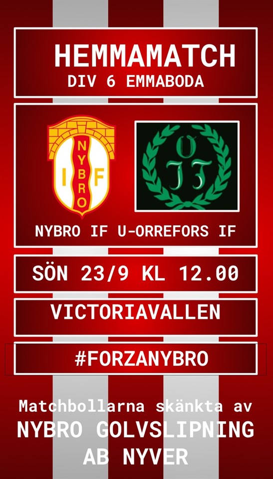 Samling 09:30 för gemensam frukost, hela Nybro IF -U är välkomna! Matchstart kl 11 Truppen: Basheer, Olsson, Olsen, Mumme, Adam, Axel, Selim, Homsi, Elias, Samuel, Krystian, Noah, Chai, Arkan, Isak, Alpay