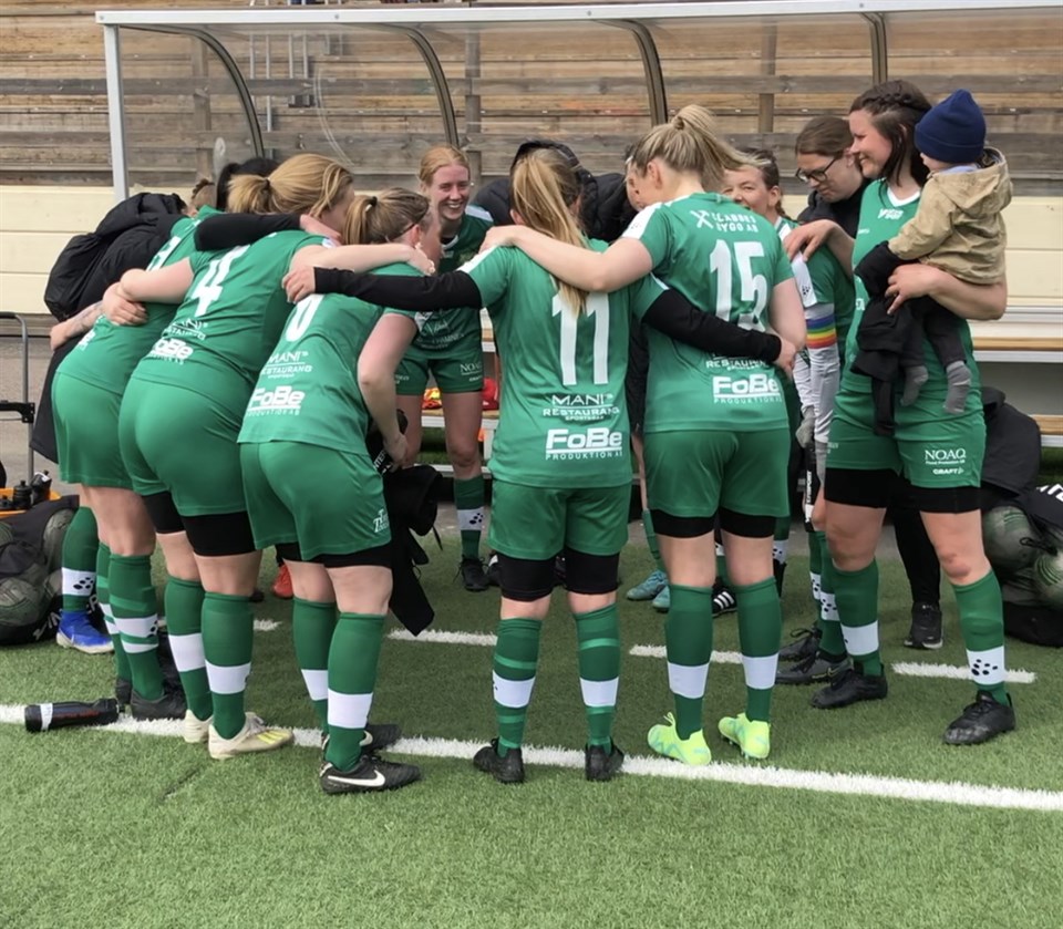 Äntligen är vi igång och idag fick vi göra vår 1a match för säsongen!! (Efter en uppskjuten dmmatch förra helgen och en dmmatch som plockades bort ur gruppspelet så fick vi äntligen komma igång med matchandet). Vi kom ut liiite ringrostiga, med lite nya spelare, ovana positioner och lite nytt tänk i vår spelidé. Vi försökte hitta rätt i positioner, vi försökte sätta de rätta passningarna, å ju längre matchen gick desto bättre kom vi in i det. När vi spelar runt, och blir mer noggranna i vårt passningsspel så gör vi det så bra, vi skapar väldigt många lägen (15 skott på mål, 11 hörnor och 5 frisparkar). Målen kommer i andra halvlek, Parling högt uppe på en hörna och nickar in 1-0 minut 52. I minut 73 gör vår pigge inhoppare Kattis 2-0 och i minuten efter gör samma Kattis även 3-0. Vi vinner matchen helt rättvist, slutresultatet blir 3-0