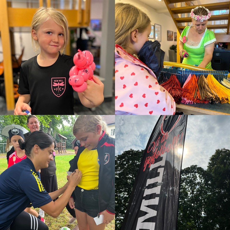 Hej alla tjejer och föräldrar! Tusen tack för en härlig dag i lördags – så kul att se många av er på plats på New Mill-dagen! Ballongprinsessa, fiskdamm, popcorn, fotoautomat och massor av annat kul och gott att äta. Hoppas ni fick en fin dagJ Jag tänker att vi kör igång nu på söndag med träningarna. Vi ses kl 15 på Alcrofältet – varmt välkomna! Hälsningar från Anki