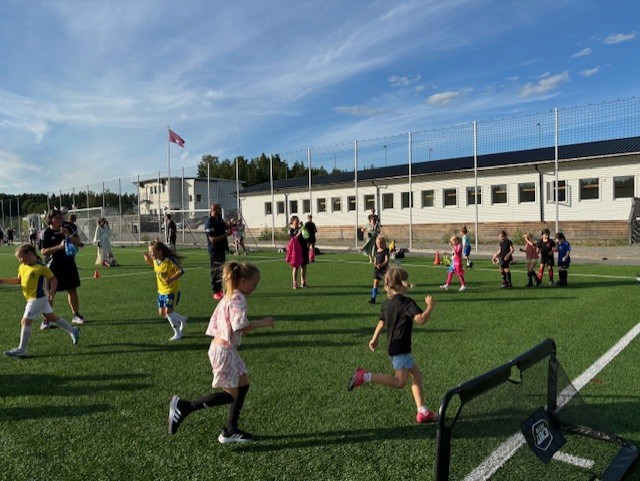 Vi hade en fin kväll på Tjejfotbollens dag på Södertälje Fotbollsarena. Vi samlades och såg alla stationer på plan, åt korv och sen började vi aktiviteterna. Vi provade bl.a. att skjuta skott mot stort mål, stafett med västar att lägga tre i rad, match med tennisboll och match med väldigt stor, mjuk boll som var väldigt skoj! En sådan jättefotboll har New Mill så det ska vi prova på träning också! Vi har fått in anmälningar till sammandraget på lördag den 7 september, för er som vill med – anmäla via kallelsen, senast tisdag kväll. Hoppas det gått bra att sälja Sportlotten! Flera har redan swishat men är det några som haft svårt att sälja meddela Marie så får vi försöka fördela om lotterna i laget. Förtjänsten av lottförsäljning kommer skapa en riktigt bra bas för att ge extra trivsel till flickorna i laget. Ses på tisdag kl. 17! Hälsningar Ledarna