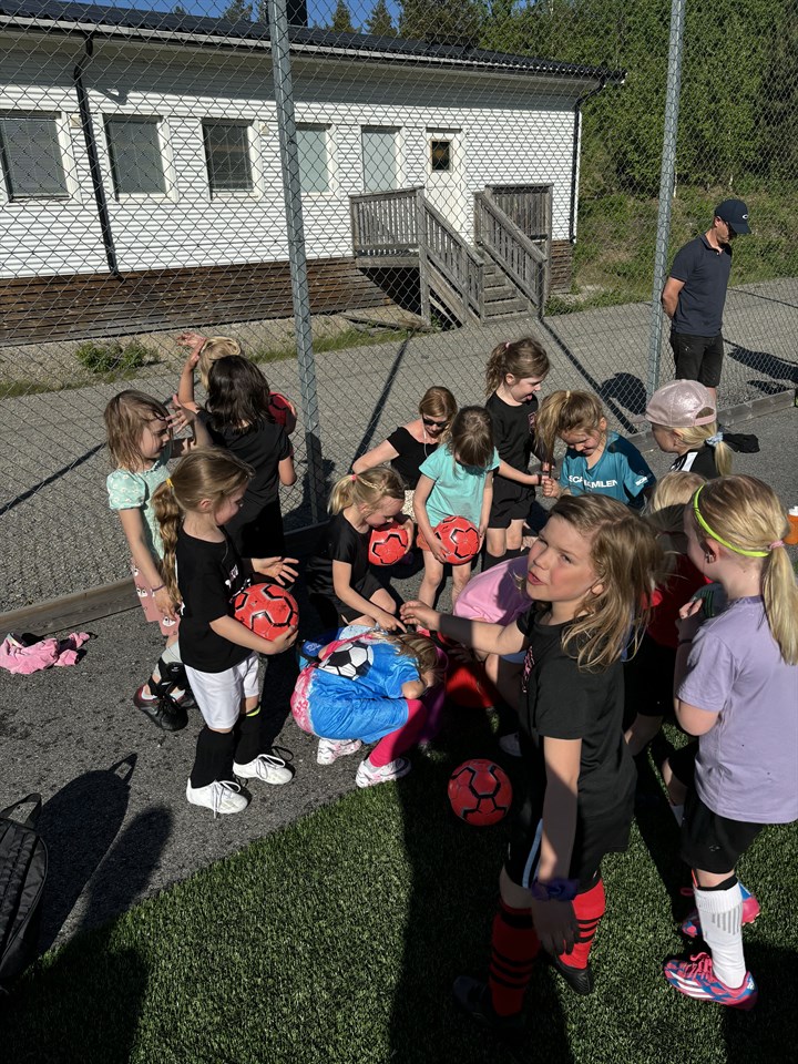 Halloj! Vi har haft flera träningar i rad med härlig högsommar värme och det ser ut som vi får njuta även på denna veckas träning☀ Sist introducerade vi Toalettkull vilket var väldigt populärt så det satsar vi på igen plus det flickorna sagt varit roligast - vattenhinkarna och fotboll! Stort tack alla föräldrar som ställer upp och hjälper till på olika sätt såsom att bära vattenhinkar, rulla boll och fotograf! Vänligen, Ledargruppen Ps. Häng gärna på torsdag den 6 juni, vi samlas kl 10.15 utanför biblioteket och går tillsammans från centrum till Folkparken. Ha gärna New mill tröja eller svart tröja eller röd tröja om ni har hemma