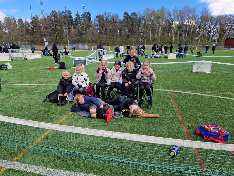 Idag var en del av gänget iväg på Cupspel i Järfälla. Det blev en fin men något kall dag med både kastvindar och hagel/snöstorm (i maj!?!). Trots kylan kämpade tjejerna verkligen på genom alla fyra mathcer. För oss tränare är det riktigt kul att se hur tjejerna utvecklats inte minst i passningsspel och speluppfattning. Framöver har vi sammandrag hemma den 25:e maj (mer info om detta kommer). Vi tänkte också försöka dra ihop lite fotbollshäng och mys med gänget två fredagar framöver (prel. datum 16 maj och 13 juni). Datum och anmälan kommer i kalendern, svara gärna direkt så ser vi hur stort intresset är. Är det många som vill/kan behöver vi hjälp av föräldrarna att ordna lite snacks och kul till barnen. På tisdag kör vi träning som vanligt på KGP. Vi ses då! Hälsar Tränarna
