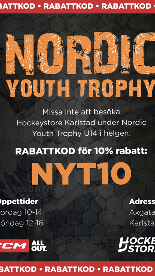 Här kommer ett erbjudande från Hockeystore och CCM i samband med Nordic Youth Trophy U14.