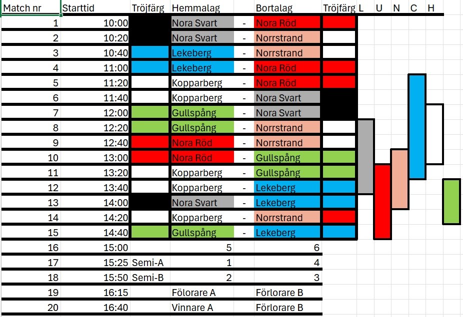 För spelschema se bilden ovan.
