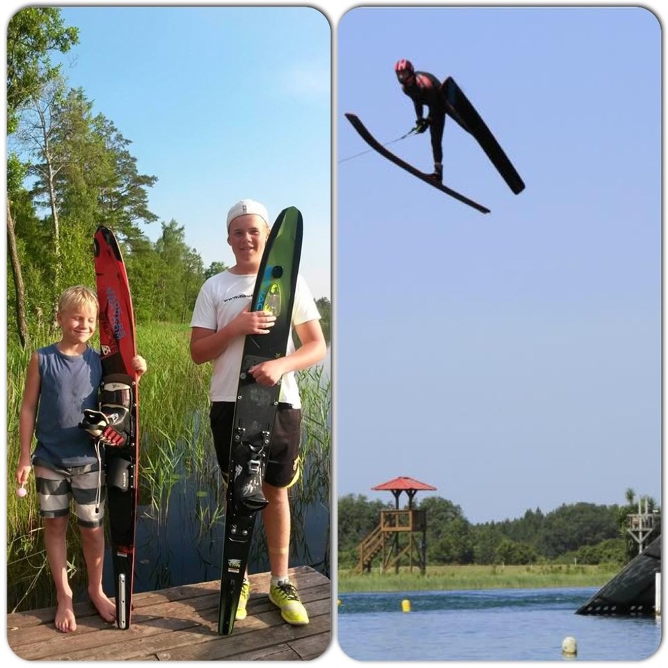 Tävlingssäsongen är igång och bröderna Blomqvist visar på fin form. I helgen satte Victor ett nytt personligt rekord med resultatet 0,5/55/16 - ett otroligt fint resultat med tanke på ålder (8 år)! Alexander visade också på fin slalomform med 2/55/12, ett resultat nära det personliga rekordet med 3 bojar på 12 meter som sattes i Slåstad, Norge förra helgen. Här finns resultat från helgens tävlingar i Knäred Även äldsta brodern Felix har tävlat i helgen i Recetto, Italien och visade även han på god form med ett hopp på 52,9 meter! Här finns resultat från tävlingen i Italien Natasha Anderberg som också tävlar för Nora har haft problem med en axel och opererades nyligen och kommer därmed inte att kunna tävla denna säsong, läs mer i artikeln på 24i Nora VSK 6 jul 2015 0kommentarer