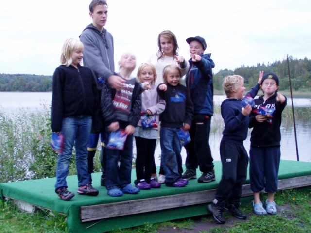 Fr vä: Tilda,Johan,Hampus,Mikaela, Nathalie,Emelie,Felix, Alexander och Simon. Saknas gör: Gustav C. Se även "bilder" Under ett uppehåll i regnet och en lucka i molntäcket avgjordes KM under fredagskvällen. Många var kallade men endast de tappra fullföljde. Trick och slalom stod på programmet , hopp fick anstå till nästa gång pga vind o regn. I nybörjarklassen på tricken vann Mikaela klart och i två-skidorsklassen slog Simon Emelie medan Felix tog hem "one ski klassen"". Slalom bjöd på en stor skräll då Emelie sopade banan med grabbarna i handicapklassen och tidigare vann Alexander kortningsklassen i B-banan, alla deltagarna gjorde fina resultat. De stora vinnarna var dock de som kom, sågs och fullföljde tävlingen. Seniorerna saknades ikväll och skyllde på skador, väder och hemmakväll..... Hamburgare, läsk och kaffe bjöds alla närvarande på och prisutdelning följde till alla som deltagit. Stort tack till domaren, båtföraren, grillmäster och alla som såg tävlingen samt hjälpte till i största allmänhet.