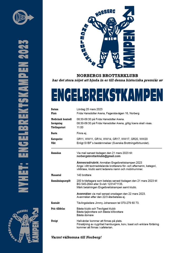 Engelbrektskampen 2023 Inbjudan Norbergs Brottarklubb 13 dec 2022 0kommentarer