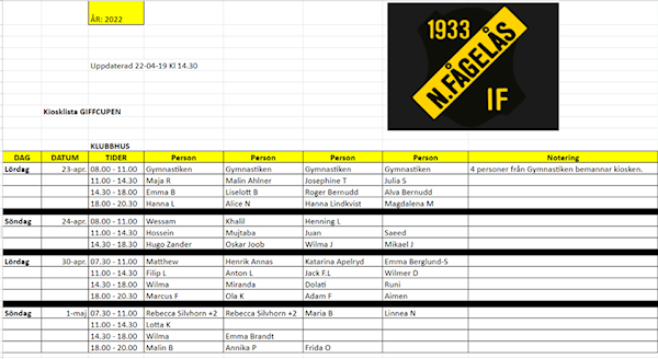 Nu är listan uppdaterad med Katarinas och Julias pass. Det fattas fortfarande personal på många pass så boka på :)