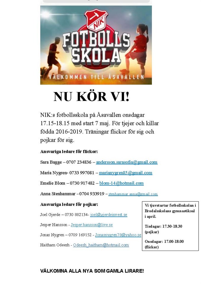 Onsdagen den 7/5 drar NIK:s fotbollsskola igång på Åsavallen!