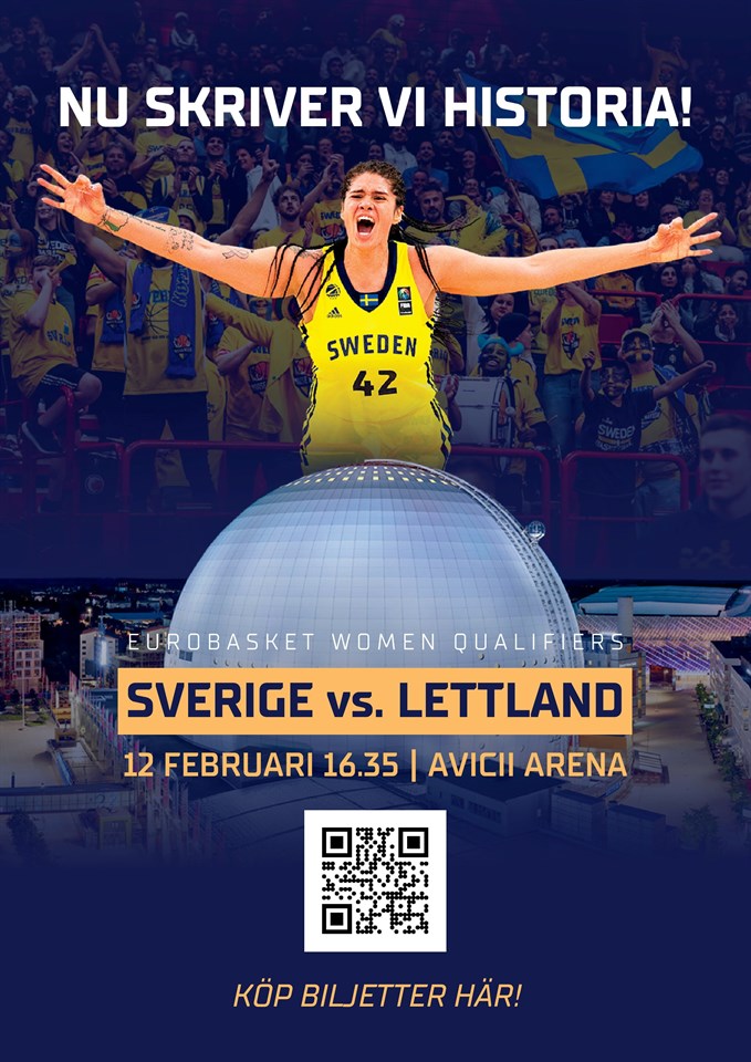 Sveriges damer går för rekord i Avicii Arena! Sveriges basketdamer möter Lettland i kampen om en plats i EM den 12 februari kl.16.35. Det ska bli en dag som går till historien - då ska vi fylla Avicii Arena och slå publikrekord för dambasket. Ni hänger väl med? Svenska Basketbollförbundet ger er förening möjlighet att köpa biljetter till matchen på Avicii Arena till starkt reducerat pris. Antalet föreningsbiljetter är begränsat så det är först till kvarn som gäller. Pris 100 kronor/biljett Villkor Kan endast köpas via https://basket.propublik.se/foreningsbiljetter2023 Fakturan ska vara betald senast 31 januari 2023 Leverans Biljetterna levereras via mejl till bokaren tidigast den 1 februari. Placering Ni sitter tillsammans givet att ni fyller i ert lagnamn Ju tidigare ni bokar desto bättre placering får ni Kompletterande försäljning Om ni gjort ett köp och vill komplettera med fler biljetter kan ni göra det genom att göra en ny bokningm på denna sida och, ange ordernumret på den första och be om att få biljetter i anslutning till den första bokningen. Det här en av de största satsningar som gjorts på ett svenskt damlag och vi ser fram emot att kraftsamla hela basket-Sverige för att fylla Avicii Arena och skapa en basketfest utöver det vanliga. Den 12 februari ska vi göra någonting som inte gjorts tidigare. Vi ska tillsammans skapa historia.