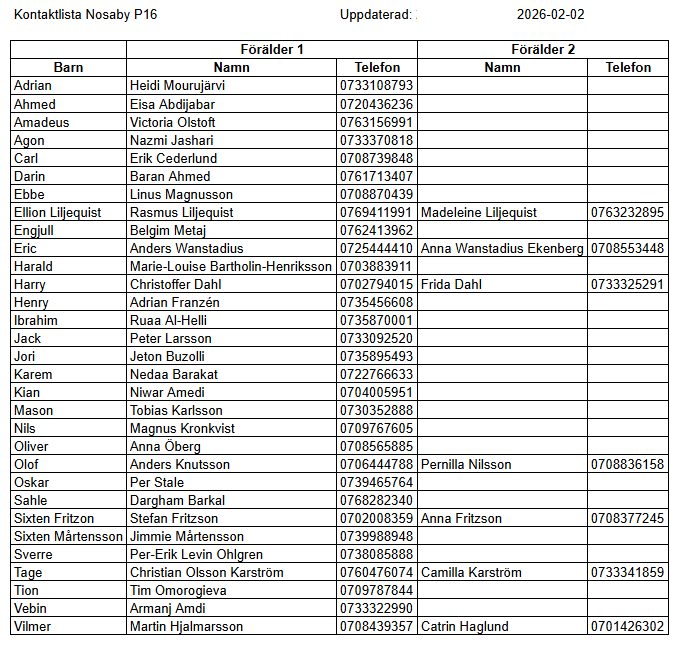 En sammanställning med kontaktuppgifter till samtliga föräldrar enligt godkännande i tidigare inlägg.
