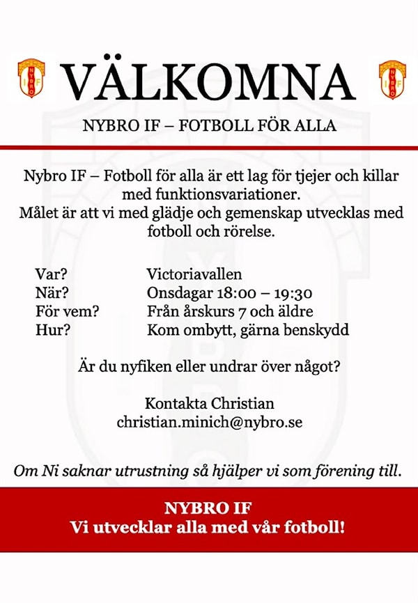 Inbjudan till Nybro IF FFA - Fotboll För Alla