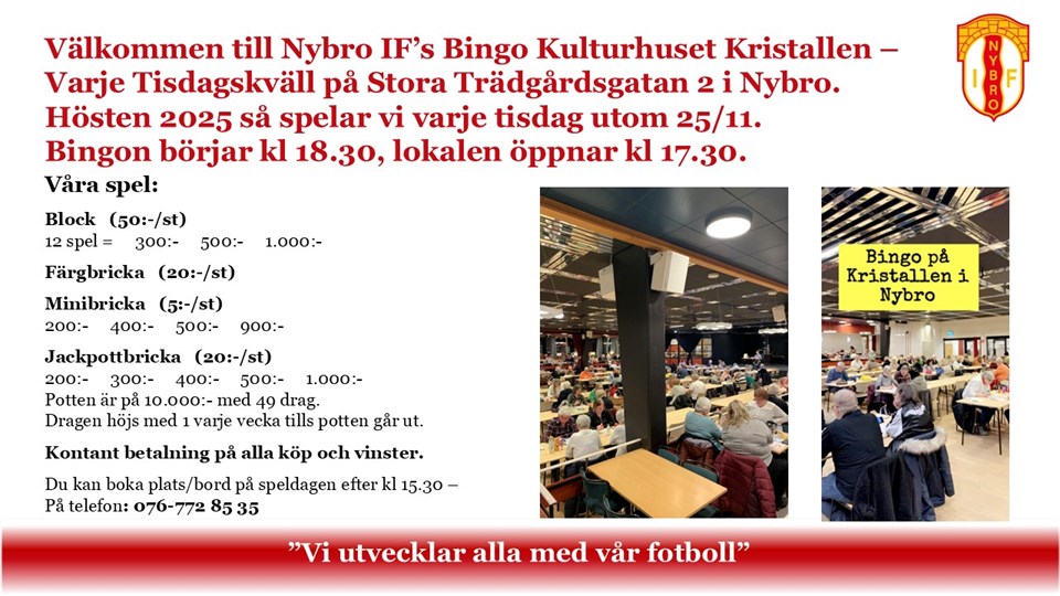Fyll i din e-postadress för gratis uppdateringar om Nybro IF Kristallenbingo
