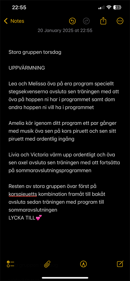 Hej föräldrar! Är som sagt iväg hela veckan så har förberett schema till tjejerna. Här kommer torsdags schemat så lägger jag upp inför söndag senare in på veckan :) Stora gruppen kommer här så lägger jag upp lilla gruppen separat eftersom jag inte får lägga in mer än 1 bild… Konståkning 20 jan 0kommentarer