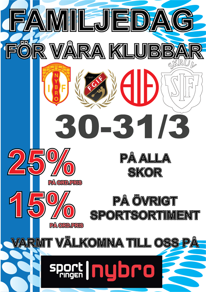 Nu är det så dax att handla billigt för hela familjen på Sportringen, tänk på att det räcker att en i familjen är medlem i Nybro IF så gäller erbjudandet. Varmt välkomna önskar personalen på Sportringen! P-2009 24 mar 2017 0kommentarer