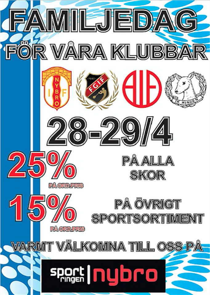 Nu är det dax att handla billigt för hela familjen på Sportringen, tänk på att det räcker att en i familjen är medlem i Nybro IF så gäller erbjudandet. Varmt välkomna önskar personalen på Sportringen! P-2009 22 apr 2016 0kommentarer