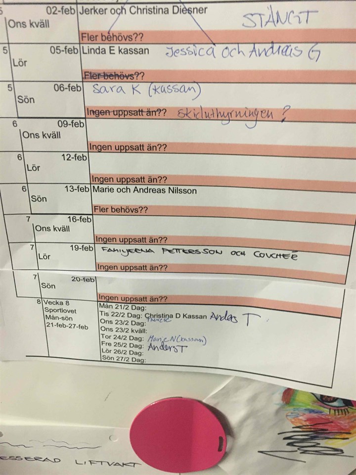 Hej vi behöver fler som hjälper till i kassan och skiduthyrningen nästa vecka och under sportlovet. Ni ser luckorna i schemat🙏 Liftvärdar 11 feb 2022 1kommentar