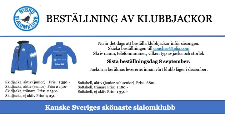 Nu är det dags att beställa klubbjackor för säsongen. Beställ innan den 8 september och få dem innan vårt klubbläger i december U12-14 22 aug 2023 0kommentarer