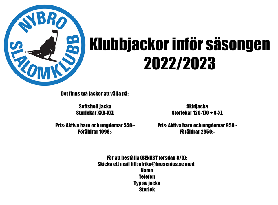 Hej, För att hinna beställa nya klubbjackor inför säsongen är det snabba ryck! Titta på bilden för instruktioner hur ni beställer. Beställningarna måste vara inskickade senast den 8/9! U12-14 4 sep 2022 0kommentarer