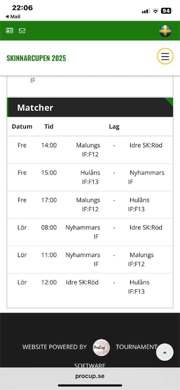 Vi har fått spelsechemat för cupen och gruppspelet. Första matchen kl 15 på fredagen. Sedan spelar vi kl 8 och 11 på lördagen. Därefter börjar slutspelet.