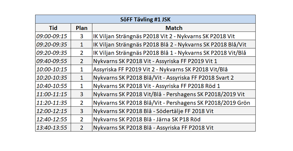 • Spelschema SöFF Tävling #1 hos Järna SK