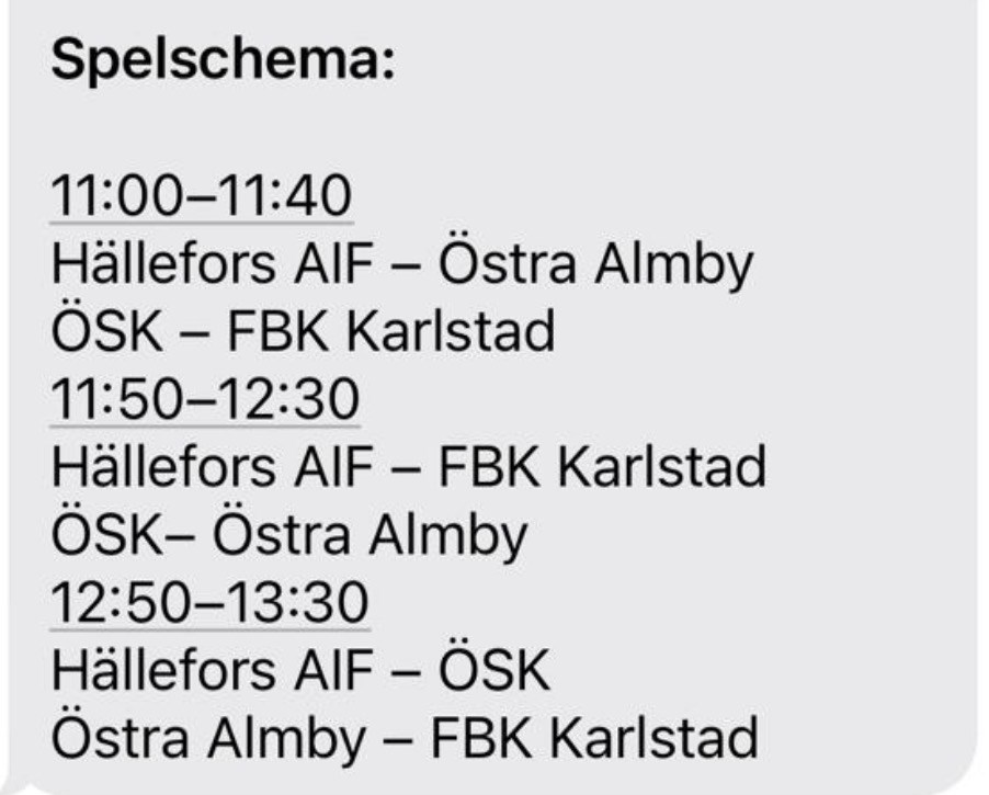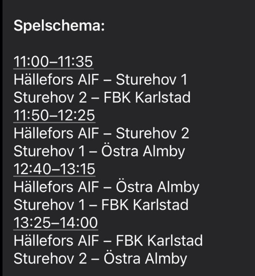 | Träningsmatcher mot Rynninge | 26 okt, 09:00 |