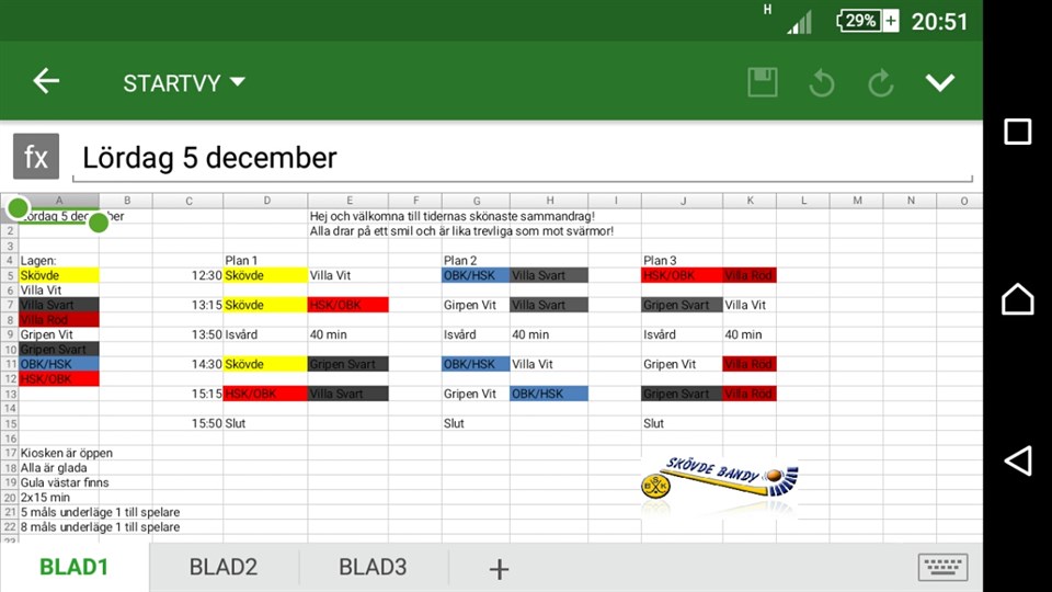 Hej på er alla glada bandyspelare och föräldrar. Kan inte annat än från oss Ledare säga att vi är grymt stolta över er att ni höll humöret uppe på Skövdebadhus "billingehus isbana" igår . Mål, bandy sarger,VATTEN, Spelare inte minst Ledare blåste in på plan .. Ni kämpade grymt bra det ska ni verkligen veta. Nu ses vi till veckan ,, Ha gärna lite koll på hemsidan för uppdatering om fallet är så att träningen/träningarna blir inställda pga av mildväder och den hårda blåsten. Vi hade en riktigt stor kombo av spelare för att få ihop 2 lag .. Killar inlånade från u12 samt kille inlånad från skridskoskolan som vägrade gå av isen när allt var över. Han ville spela mer !! :-) Så genomsnitligt så höll vi nog ramen för U9 spel ändå :-) Var med blöta skor och ett leenda på läpparna man åkte hem från Skövde igår. Hej på er Ledarna U-12 OBK/HSK BLÅ serie 6 dec 2015 0kommentarer