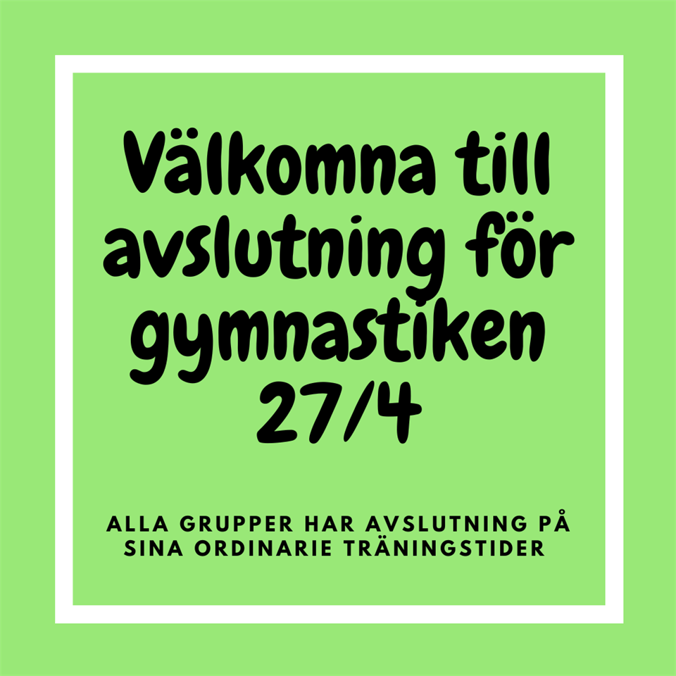 Varmt välkoma till vår avslutning på gymnastiken. Föräldar och nära och kära är varmt välkoman att titta. Det blir uppvisning och diplomutdelning :) Barngymnastik 4-6 år 20 apr 2022 3kommentarer