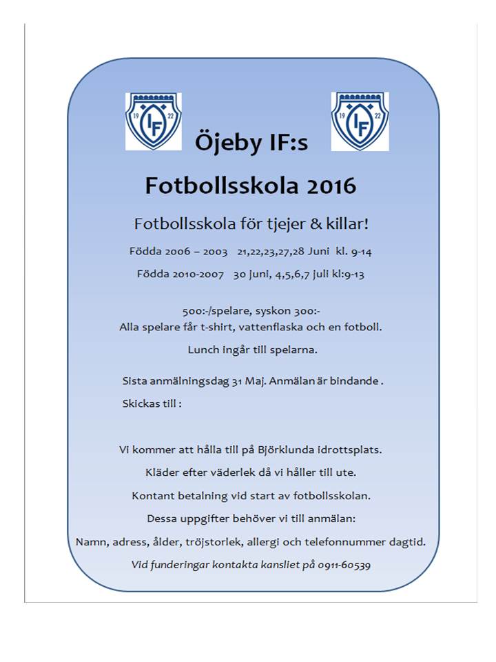 Klicka på bekräftelselänken i det mejl vi skickat dig för att börja ta emot uppdateringar från Öjeby IF F-06/07.