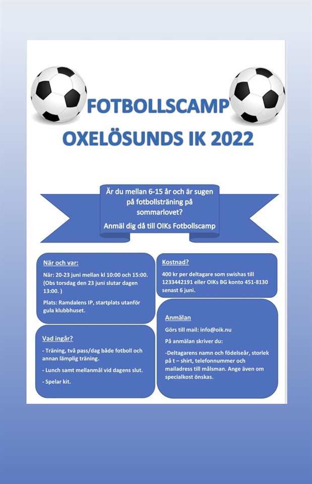 Välkommen att anmäla dig till årets fotbollscamp? F10-12 26 maj 2022 0kommentarer