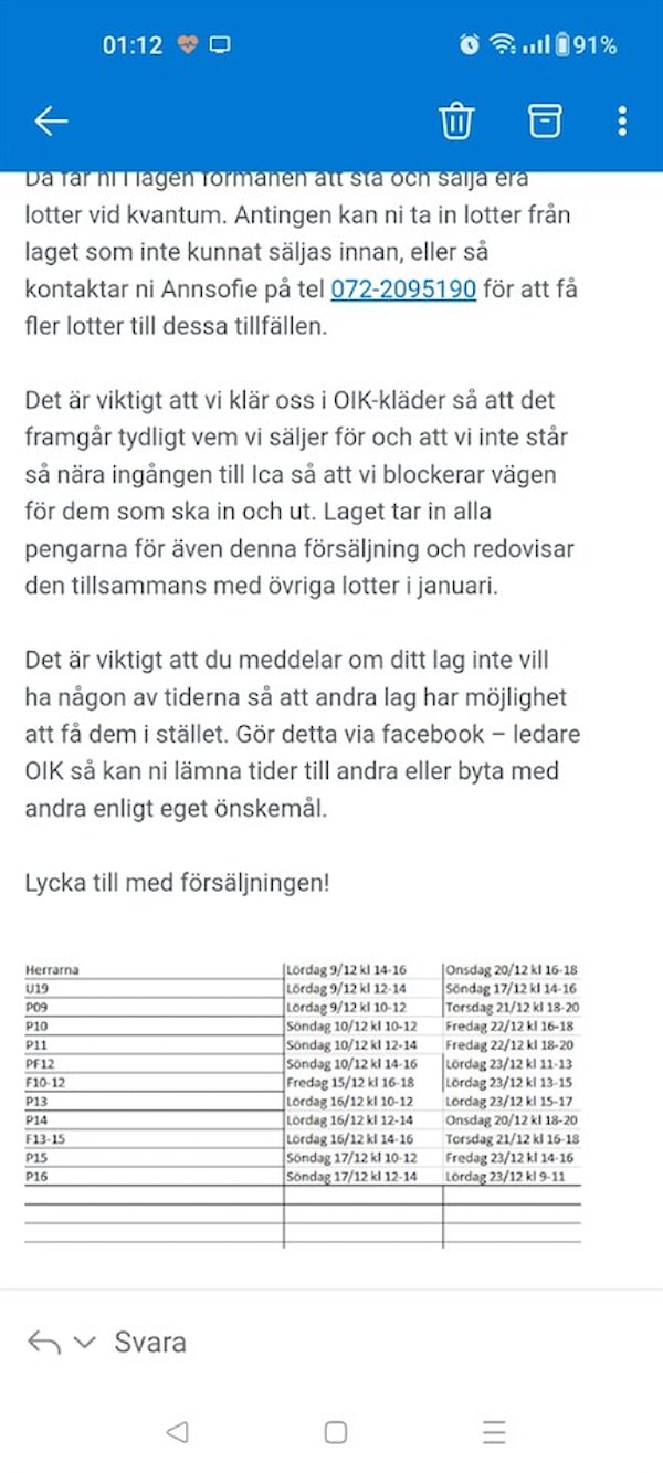 RapporteraJag ville mest förtydliga att vi som lag inte kan välja om vi ska eller inte ska sälja lotter. Och att alla måste göra det man kan. Då flera föräldrar vägrat ta emot lotter. Föreningen måste få in pengar på något sätt så att vi kan få utrustning till träningar, matcher m.m.