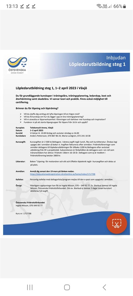 Tycker du detta verkar intressant och vill veta mer, prata med mig eller någon annan i träning/tävling sektionen. Länk till inbjudan: https://www.friidrott.se/media/yemnpjp5/lopledare-vaxjo.pdf